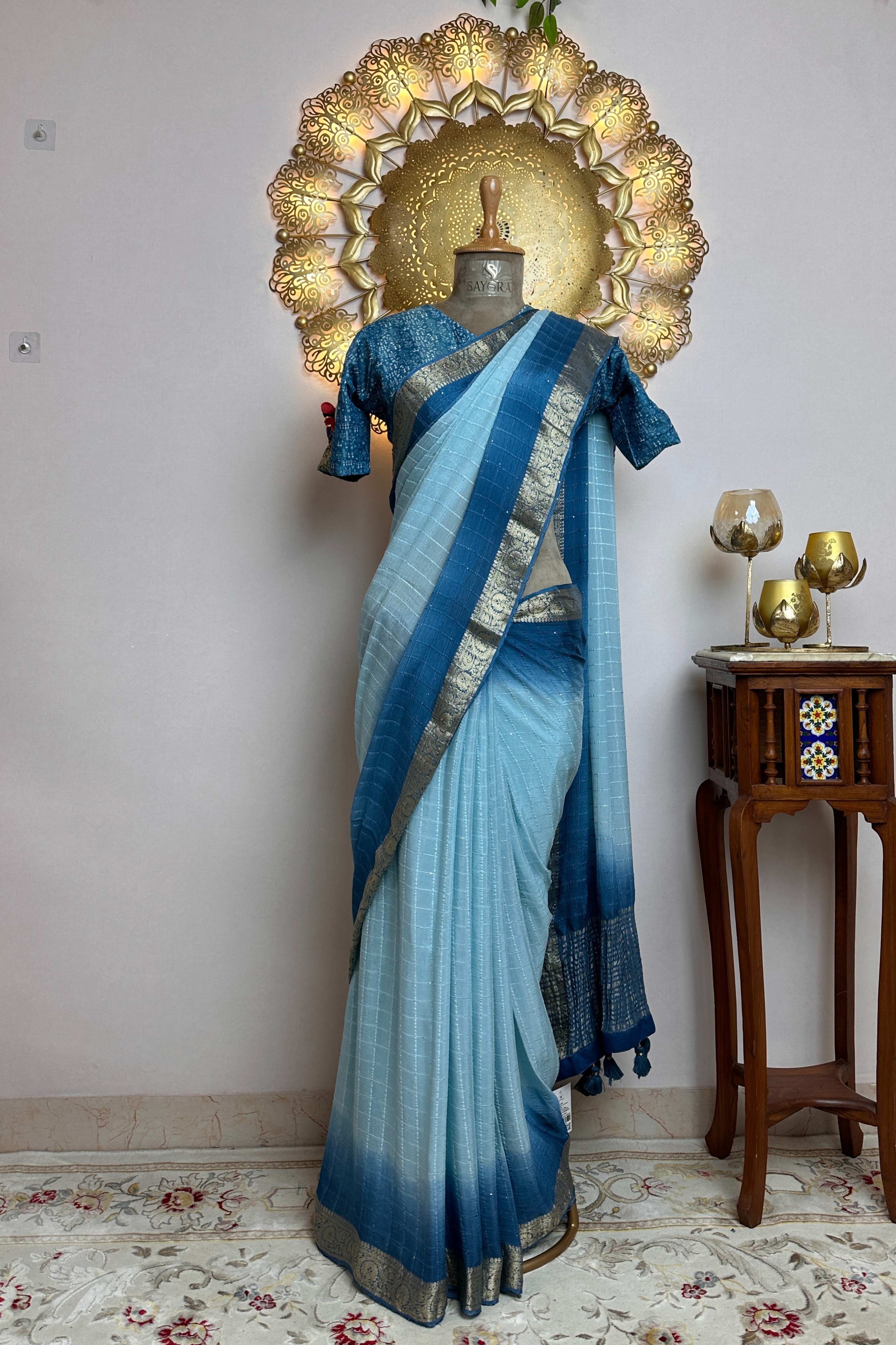 Navy Blue Chanderi Gold Zari Jamdani Weaving Unstitched suit Set