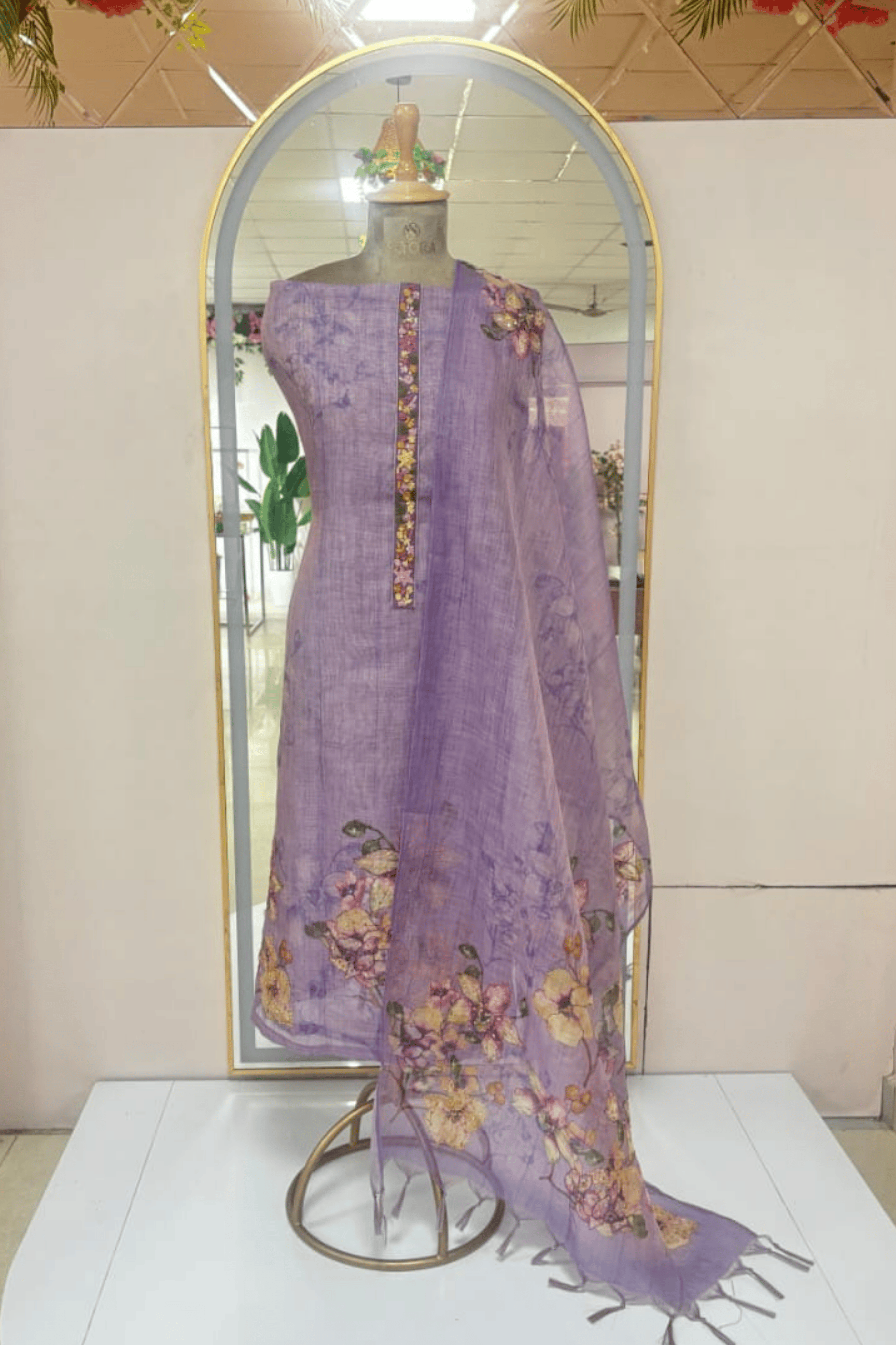 Purple Linen Silk 3 Piece Unstitched Suit Set