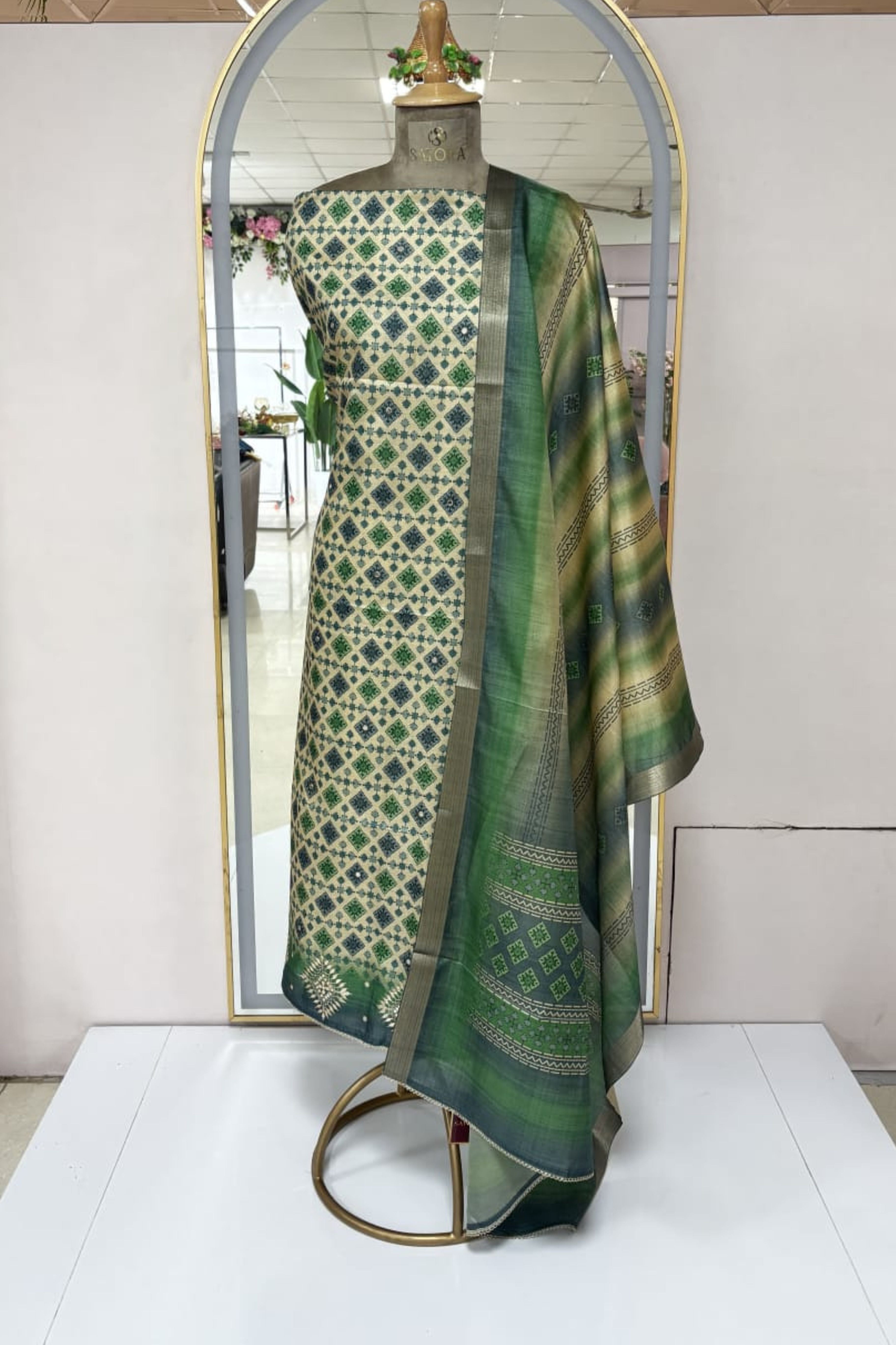 Rajasthani Bandhej 3 piece Unstitched Suit set