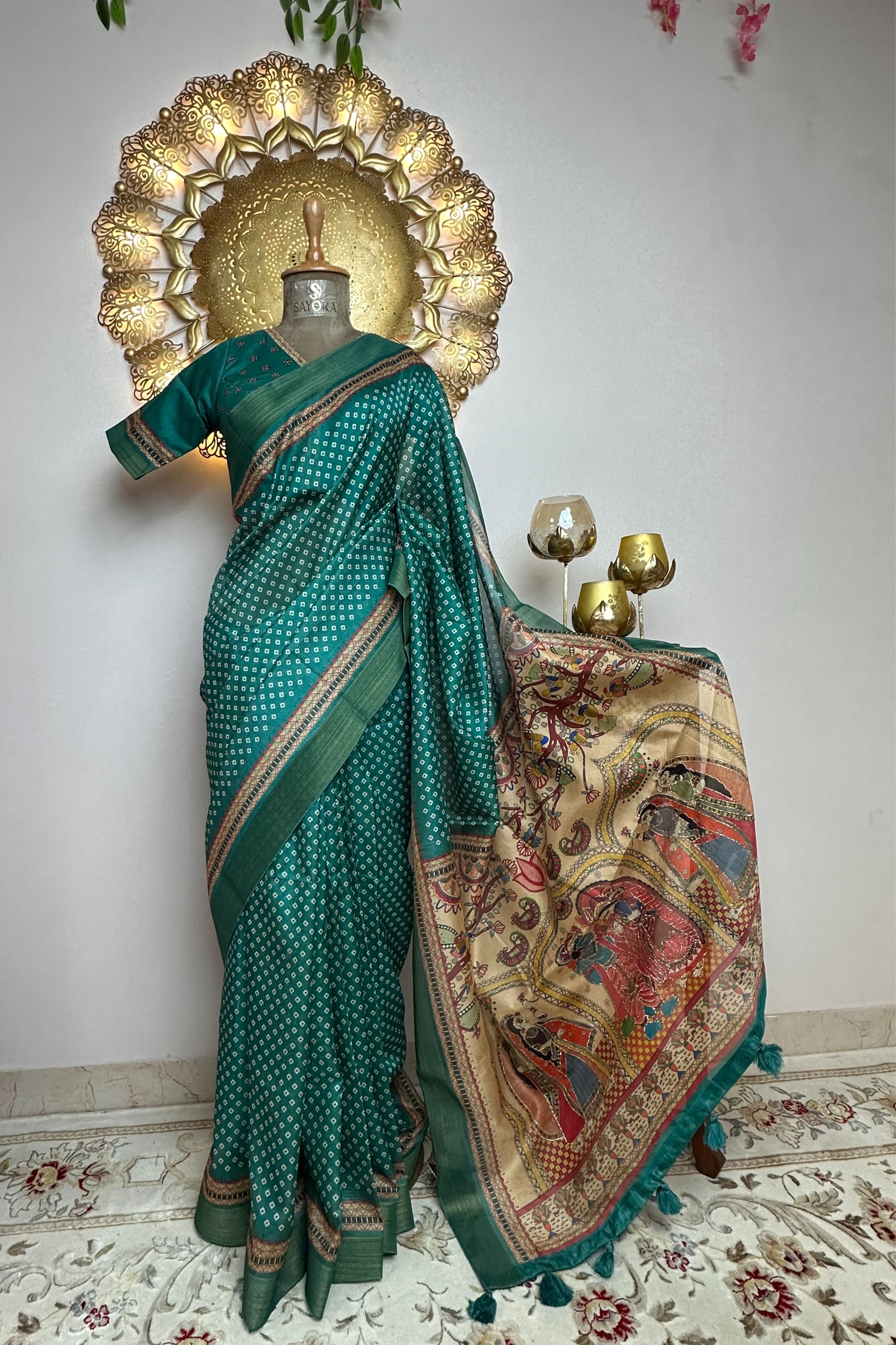 Gajji silk bandhni style designer Co-ord set (with neck accessories).