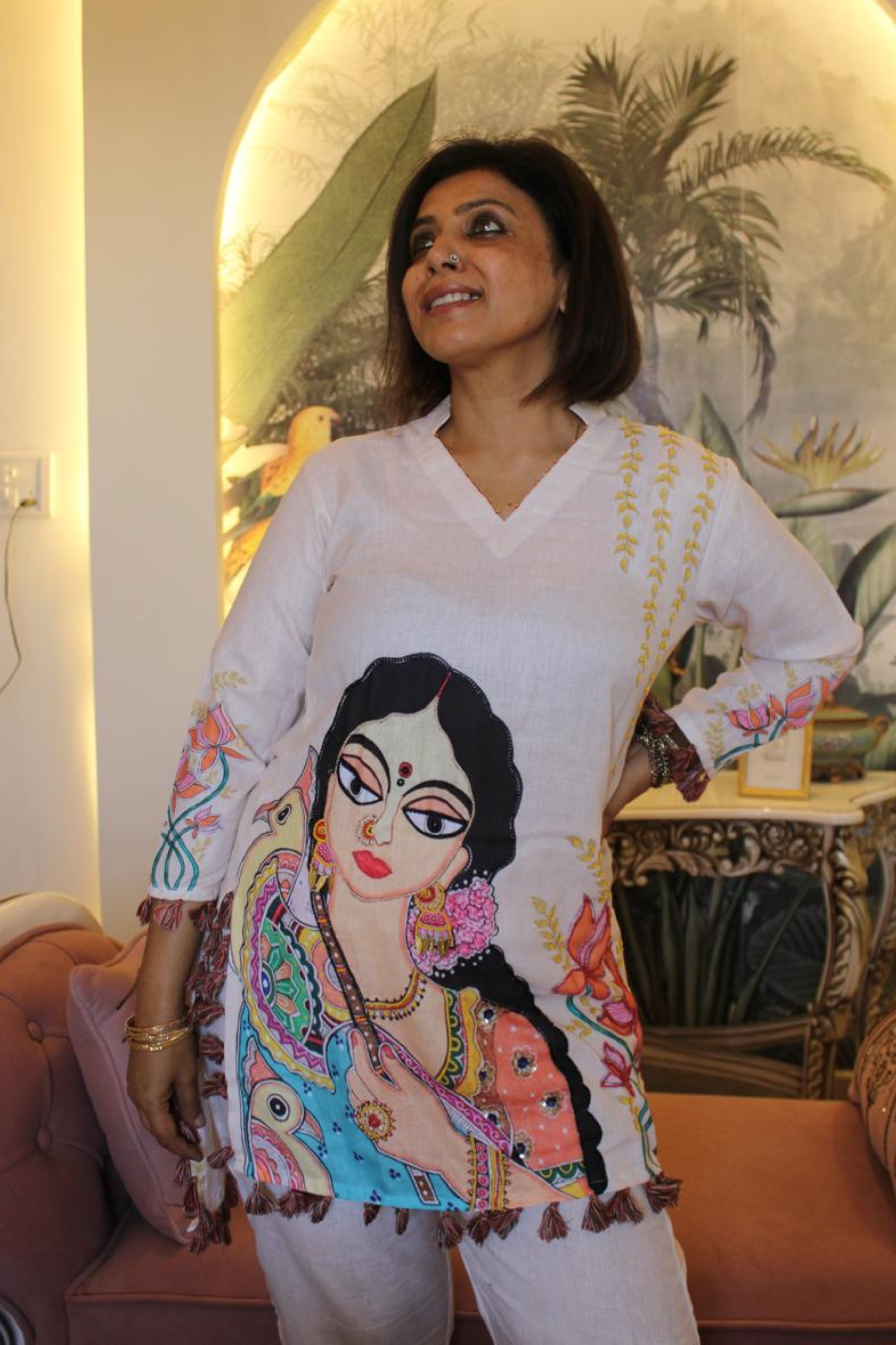 Rs. 2,495.00Rs. 2,495.00Rs. 2,495.00Madhubani style hand embroidered designer linen Co-ord set