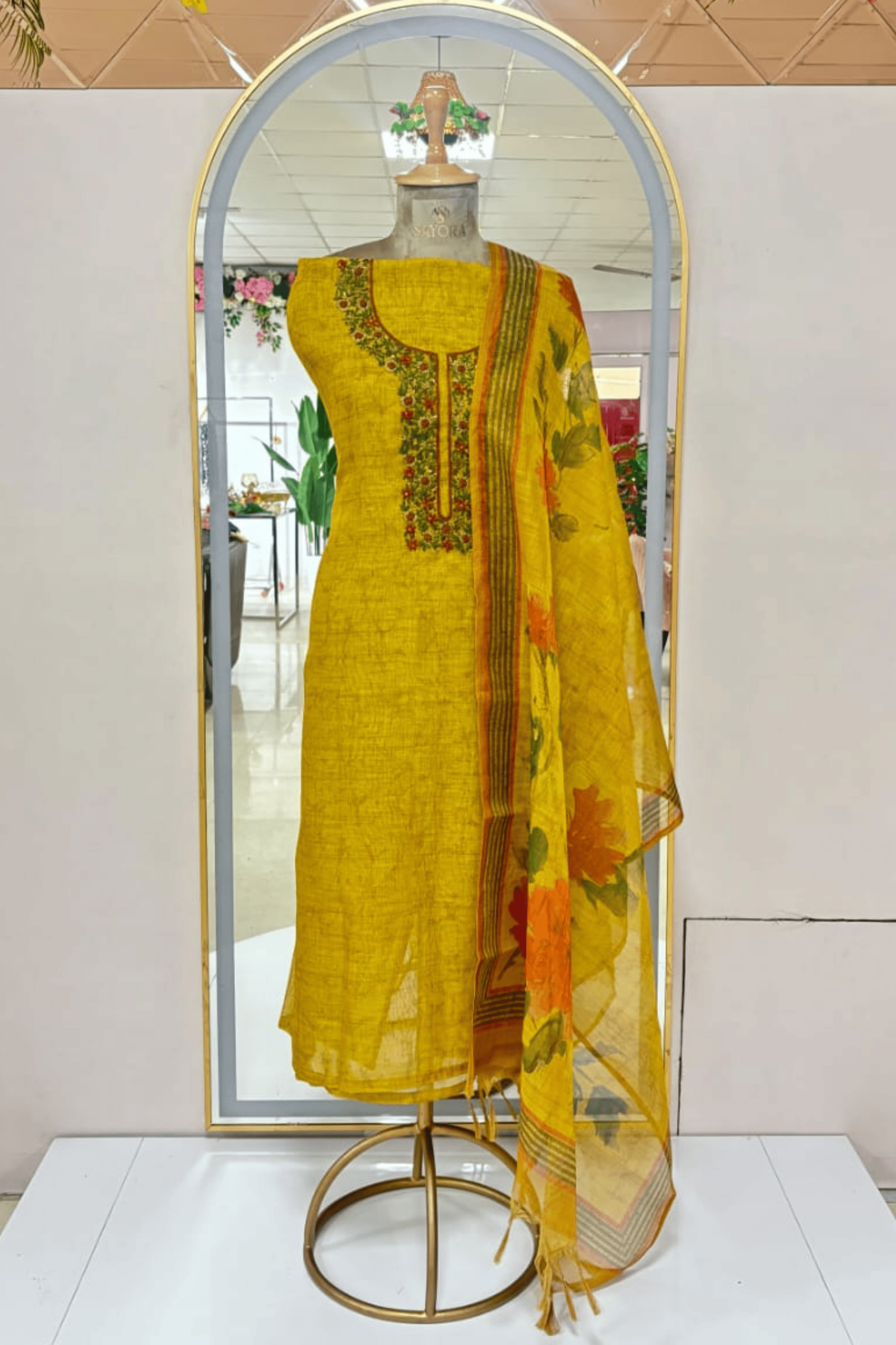 Mustard Linen Silk 3 Piece Unstitched Suit Set