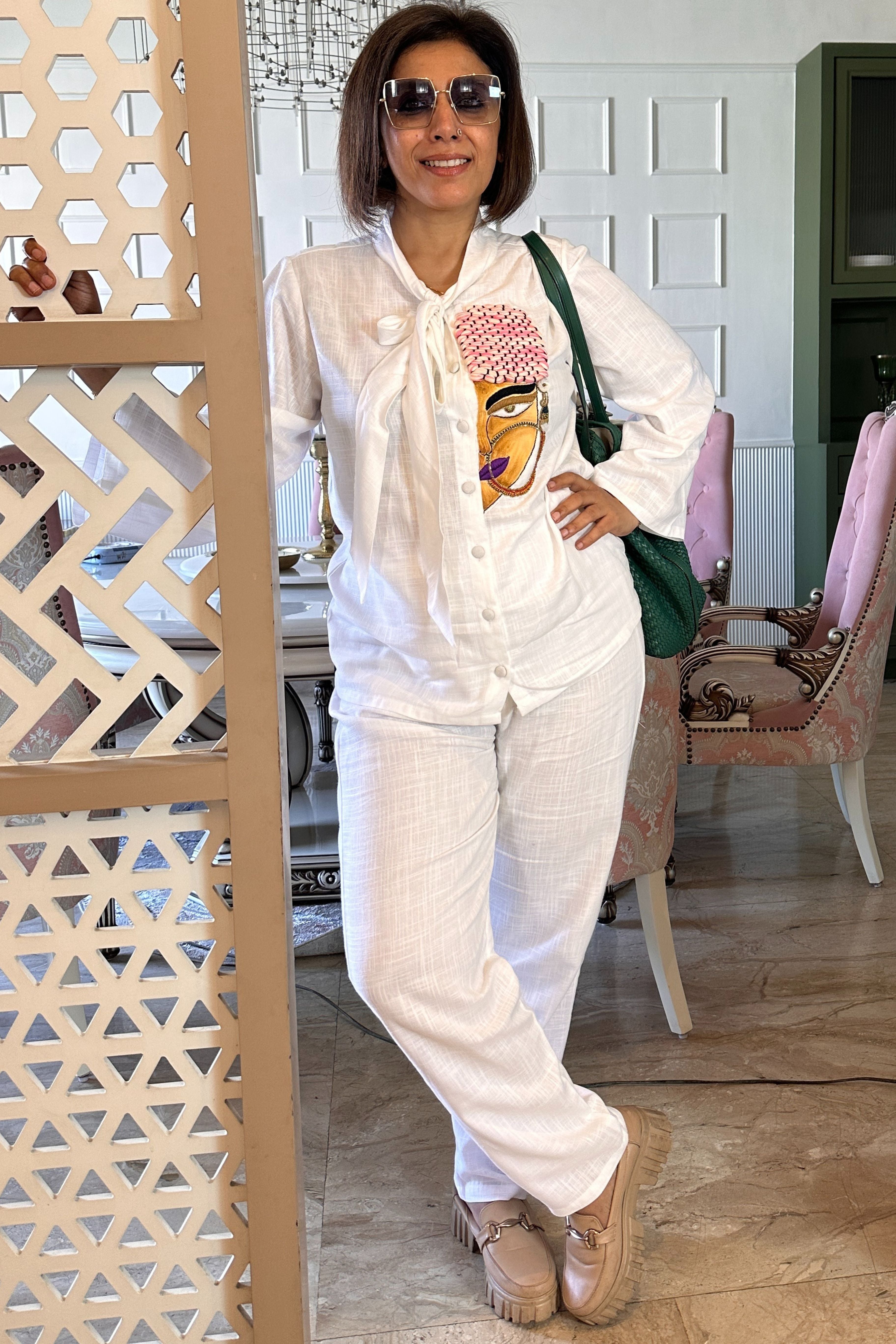 The Braided Muse "White Linen Hand-embroidered Co-ord Set"