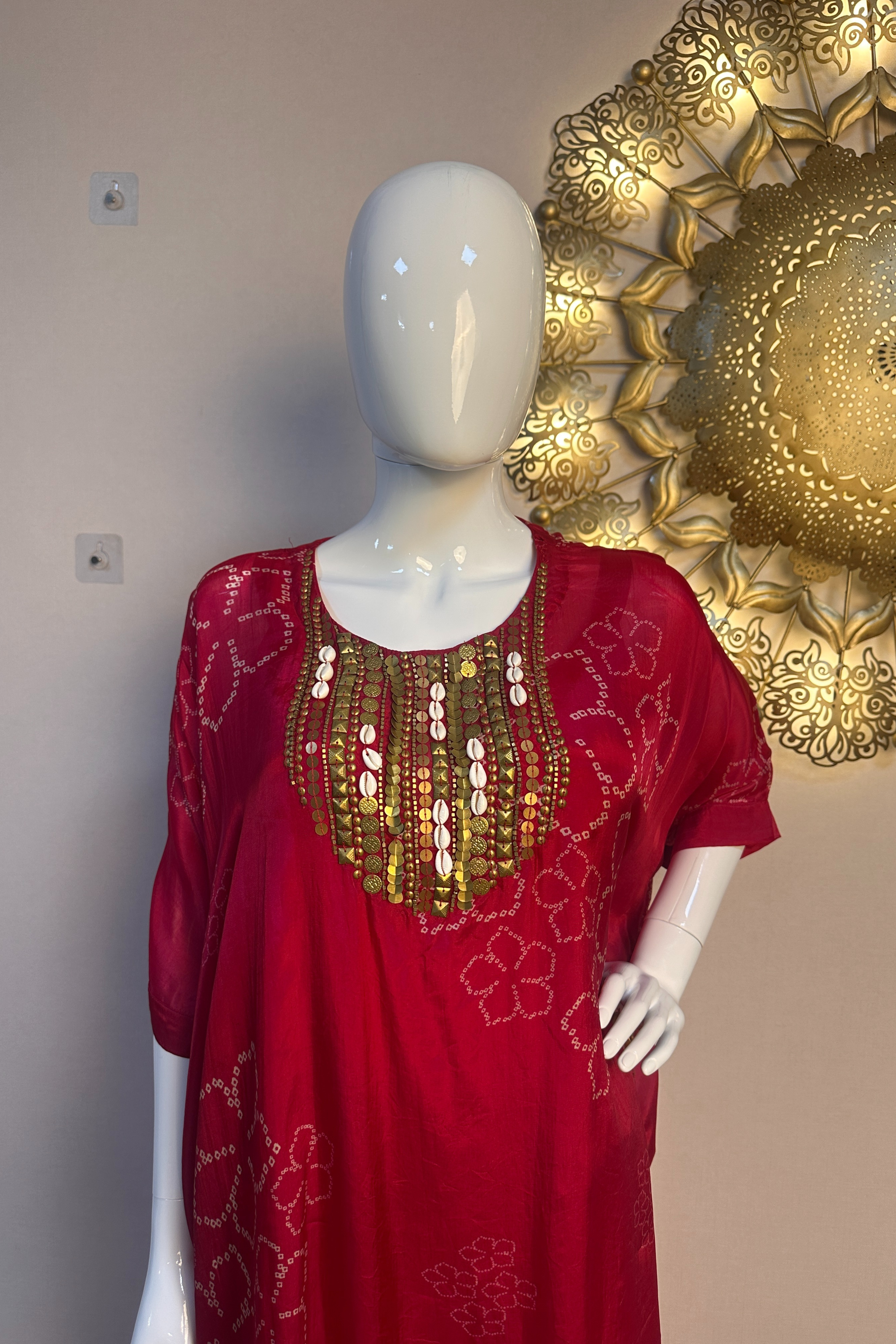 "Banjara" Bandhni Print Cowrie 3pc Kaftan Set