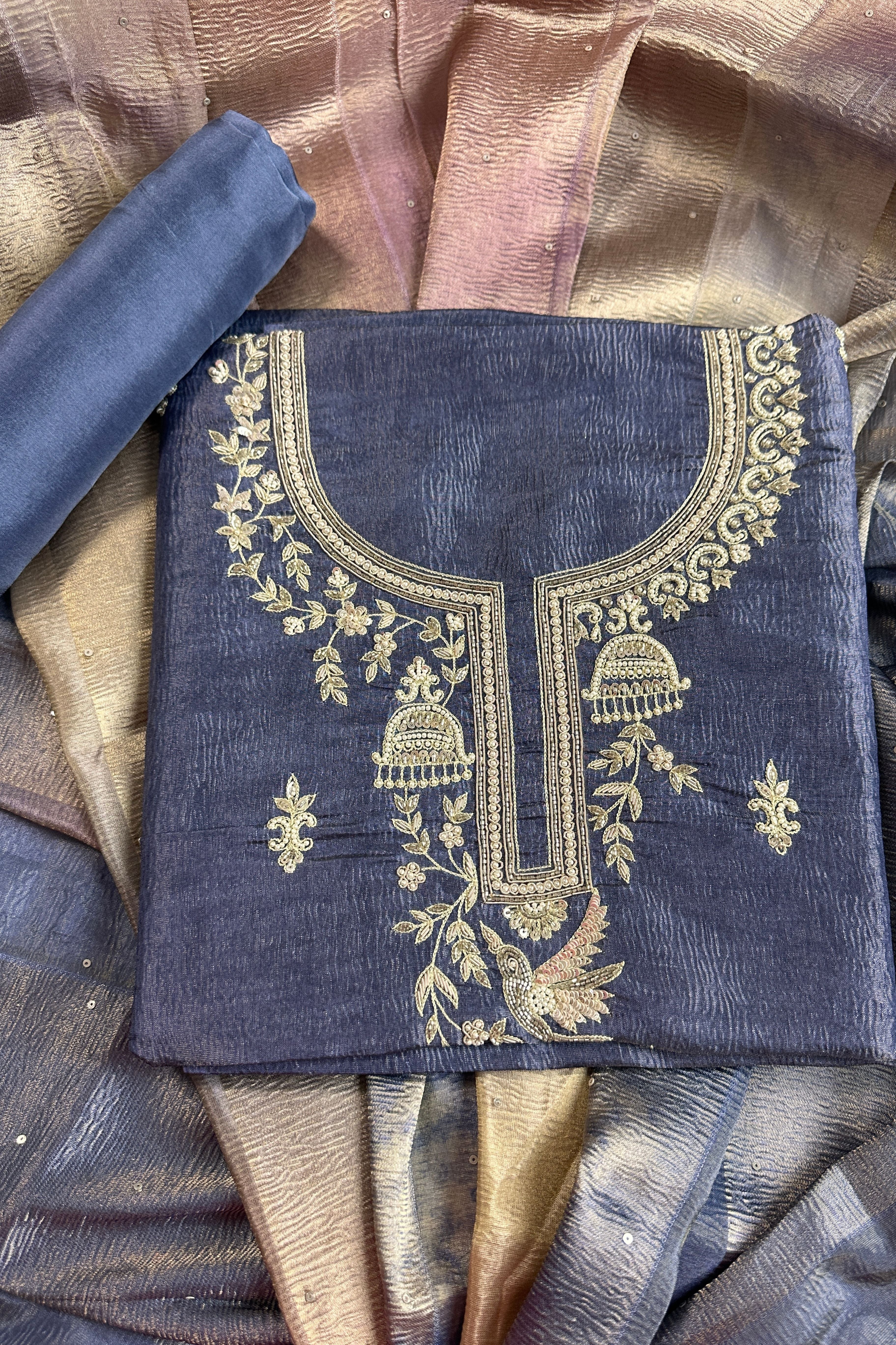 Crushed Tissue Pearl and Zardozi embroidered Unstitched Suit