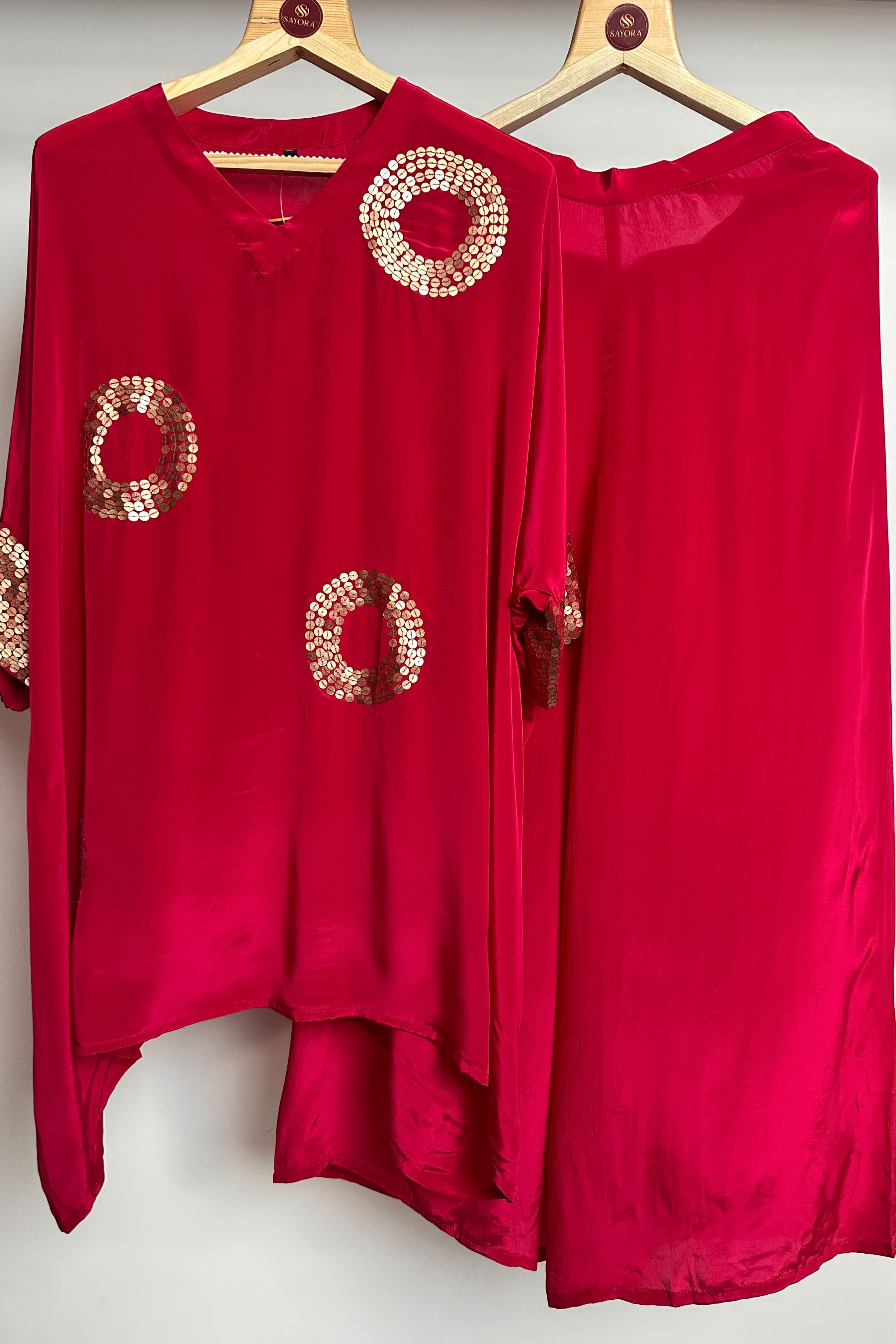 Kantha & mirror embroidered mulchanderi Co-ord set