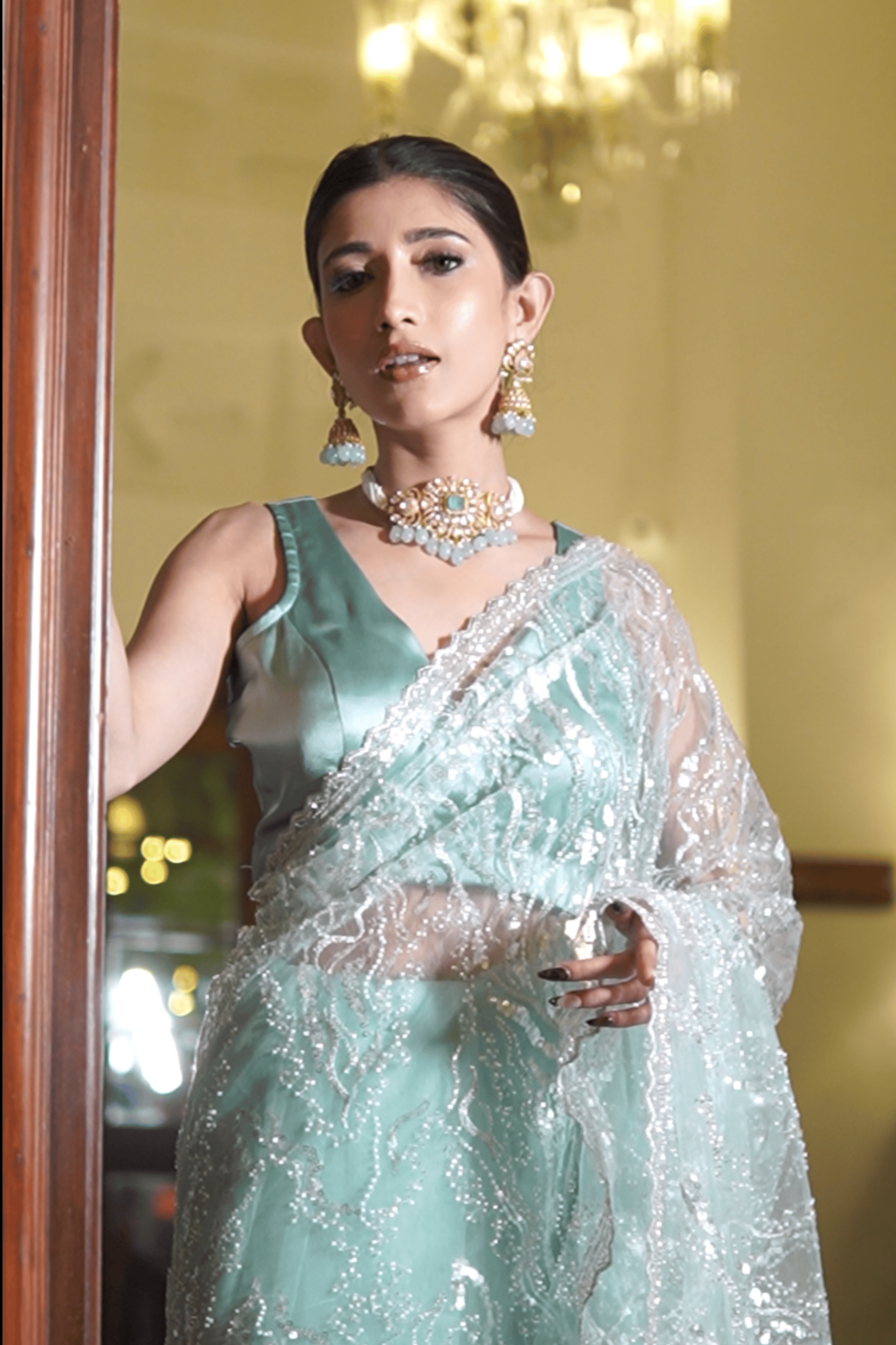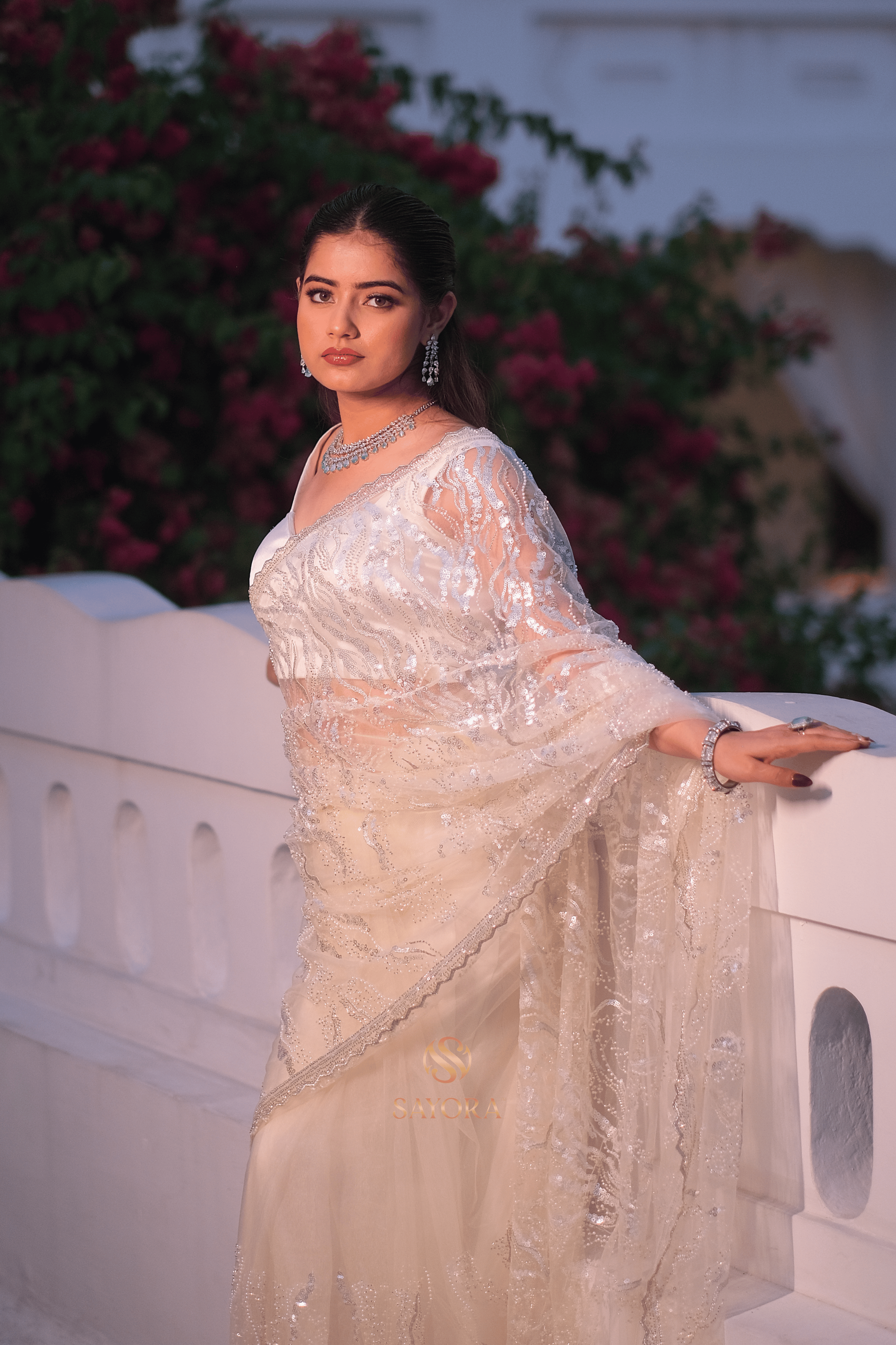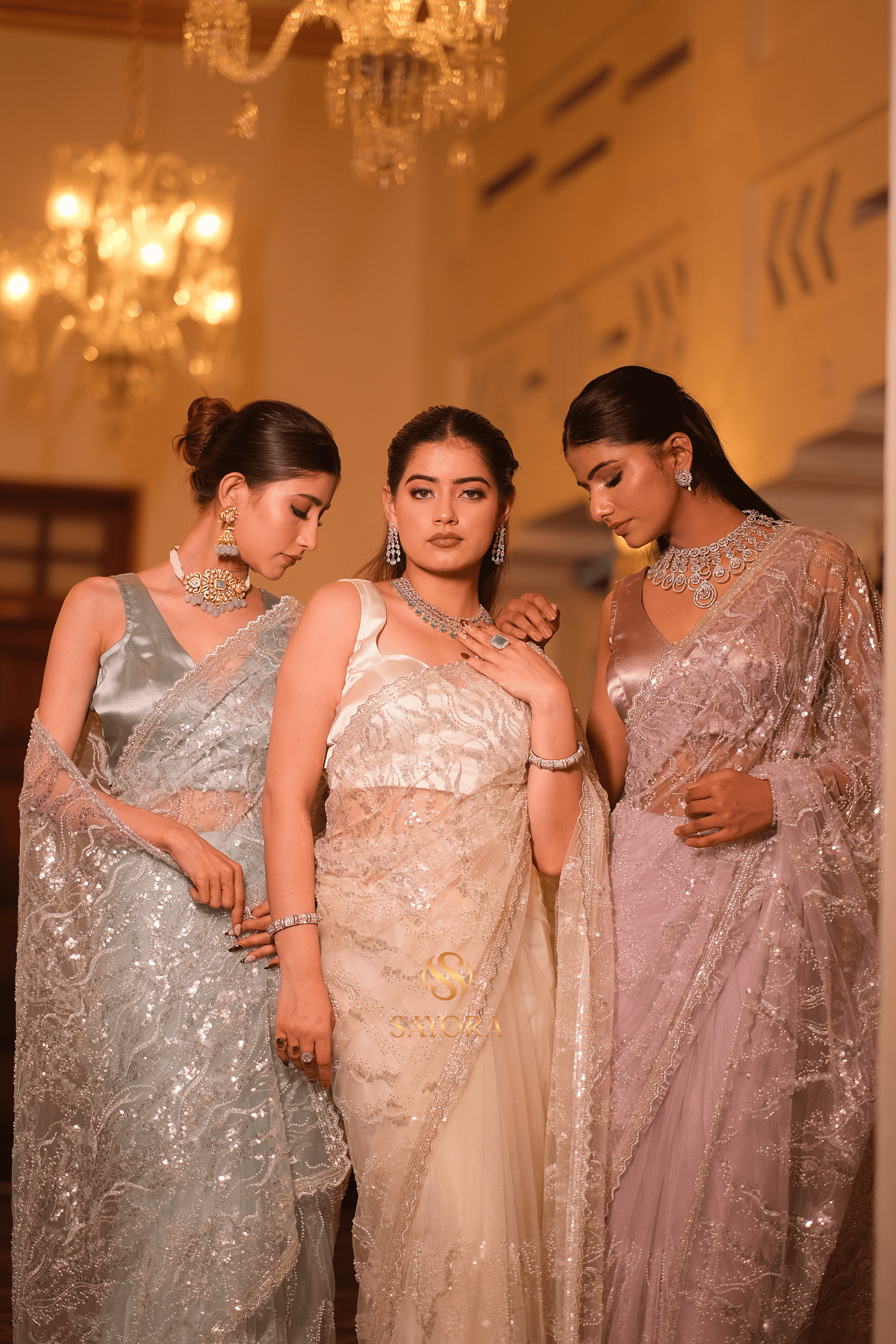 The Chandelier Dream Saree is crafted to capture the brilliance of a timeless chandelier—radiant, opulent, and breathtaking. Designed in luminous...