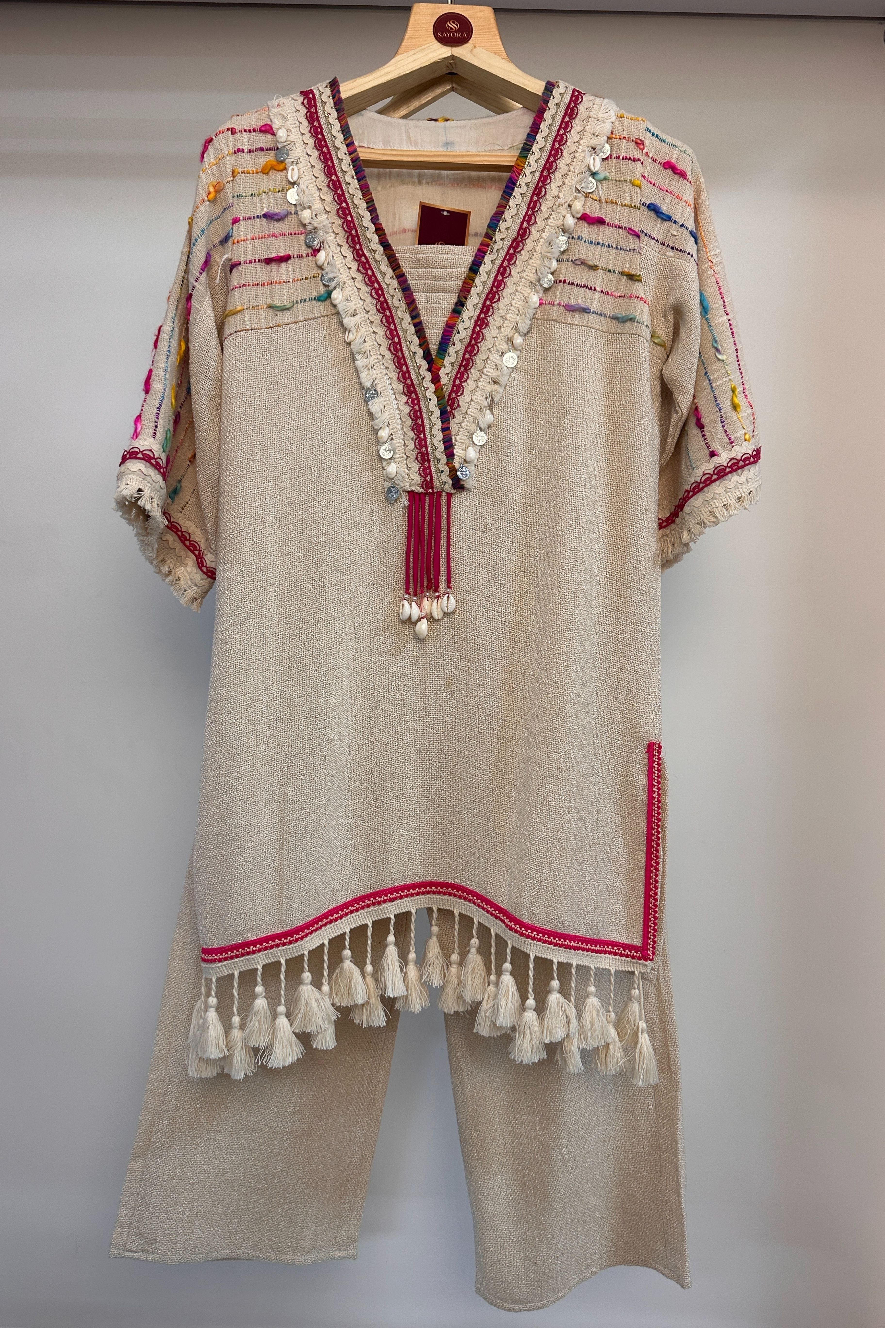 Kurti+pant set. ideal for casual wear,work wear and everyday essentials,holiday wear,beach wear. Fabric details: Kurti:Jute linen. Pant:Jute linen....